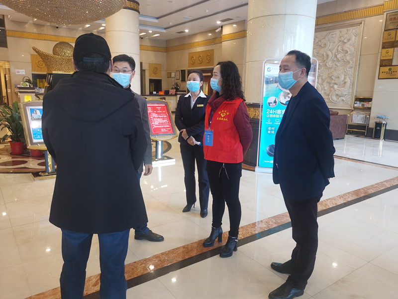 神龍大酒店是衡陽知名四星級酒店。目前,酒店關閉餐飲娛樂部門,僅留客房部繼續(xù)營業(yè)。為確保防疫復工順利開展,弘湘國投選派聯(lián)絡員進駐商業(yè)大廈,專門負責督導神龍大酒店疫情防控工作。陳新驥在與企業(yè)負責人和酒店負責人交談了解情況后,針對酒店人員流動性大、構成復雜的特點,強調:要重點督促酒店進出人員測量體溫、佩戴口罩、衛(wèi)生措施、員工食堂分餐、員工宿舍衛(wèi)生和日常消毒情況。聯(lián)絡員要每日報告商業(yè)大廈復工復產(chǎn)企業(yè)和防疫工作情況,要有紀律,要勇于擔當,為企業(yè)辦實事,解難事。我們既要打贏疫情防控戰(zhàn),也要幫助保護好衡陽本地知名企業(yè)。
