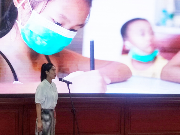 “這是一群無形而又特別的抗疫者,沒有請(qǐng)戰(zhàn)書,沒有紅手印,沒有被表彰,甚至連幾張抗疫的照片都沒有。但是他們的袋子里總懷揣著厚厚的清單,今天是658張”“ 新的路上,是團(tuán)結(jié)一心、英勇無畏的抗疫精神,也是發(fā)展為上、民生為本的弘湘力量!”比賽現(xiàn)場,黃雅婷緊緊圍繞弘湘戰(zhàn)“疫”這一主題,講述了一個(gè)個(gè)發(fā)生在弘湘抗疫的感人故事。作為比賽第一位出場的她以真摯的情感、極富感染力的宣講方式以及自然樸實(shí)流暢的語言,將“第658份清單”的弘湘戰(zhàn)疫的故事聲情并茂地呈現(xiàn)在各位評(píng)委和觀眾面前,用真人、真事、真情表達(dá)弘湘人在抗疫戰(zhàn)斗中的不畏困難、勇于擔(dān)當(dāng),展現(xiàn)了弘湘集團(tuán)全體黨員干部在疫情防控中團(tuán)結(jié)一心,勇往直前的精神風(fēng)貌。