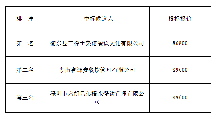 衡陽(yáng)市衡府賓館有限公司(養(yǎng)正園)食堂勞務(wù)公開(kāi)比選候選人公示