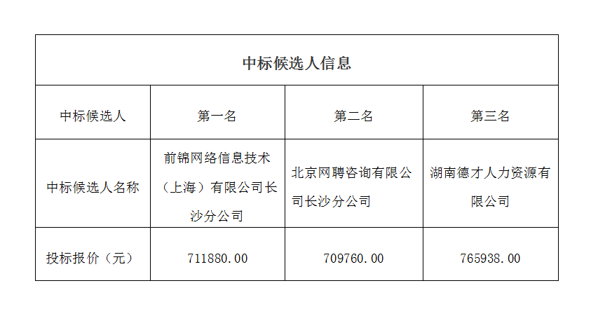 2022年衡陽市國資系統(tǒng)人才引進項目中介機構(gòu)中標候選人公示