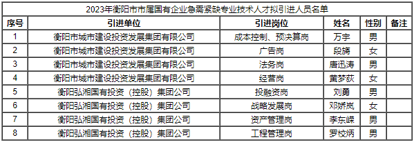 2023年衡陽(yáng)市市屬國(guó)有企業(yè)急需緊缺專業(yè)技術(shù)人才擬引進(jìn)人員名單公示