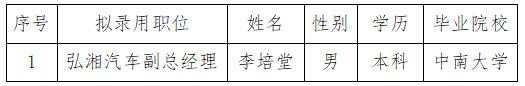 衡陽(yáng)弘湘汽車科技有限公司擬錄用人員公示公告