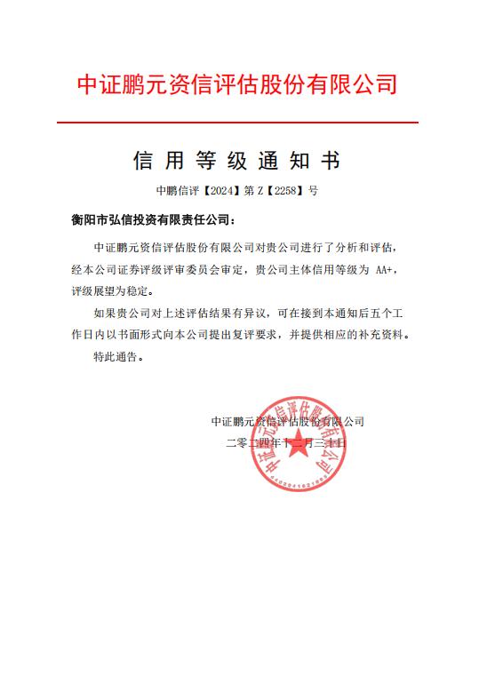 衡陽國(guó)資新增一家AA+信用等級(jí)企業(yè)
